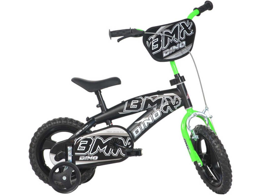 ***Dětské chlapecké černé kolo Dino Bikes 12" CSK5125, propracovaný design, sportovní vzhled BMX, balanční kolečka, nosnost 45kg, pro výšku dítěte 87-110cm, věk 3-4 roky, baleno v kartonu.