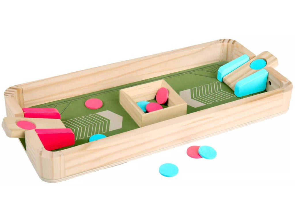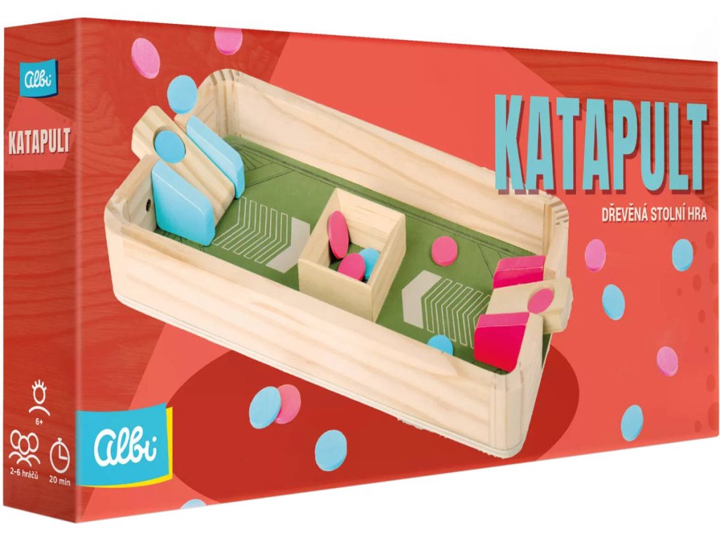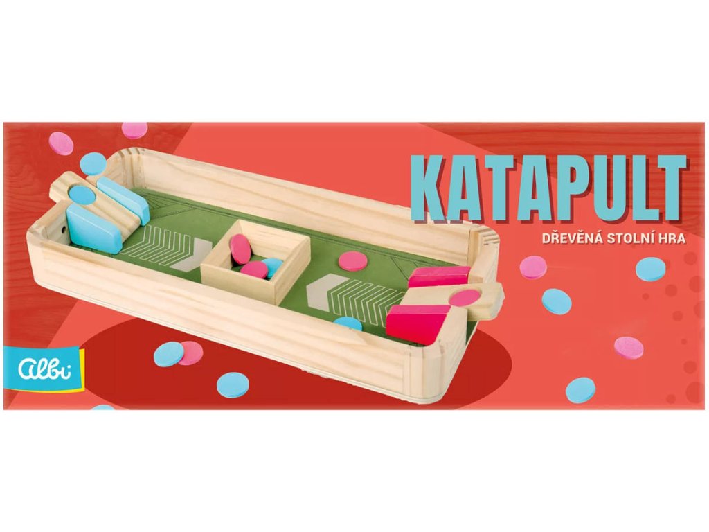 ALBI Katapult - dřevěná stolní společenská hra.Dřevěné stolní hry od Albi je série 3 jednoduchých zábavných her pro 2 hráče, které si nejlépe užijete na rodinném či přátelském posezení. Přebíjená vyžaduje rychlé reakce k přesunu žetonů na soupeřovu stranu, zatímco v Katapultu se hráči snaží vystřelit žetony do cílového pole. Fotbálek přináší zábavu v podobě cvrnkání, kde si hráči mohou procvičit taktiku a přesnost.
