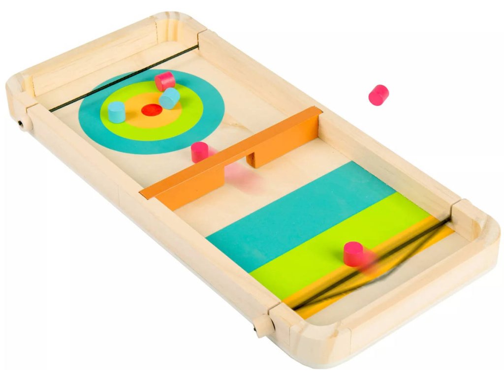 Dřevěná stolní Přebíjená je svižná hra, ve které se snažíte dostat co nejrychleji všechny žetony na soupeřovu stranu. Budete přitom potřebovat jak svižné ruce, tak přesnou mušku!