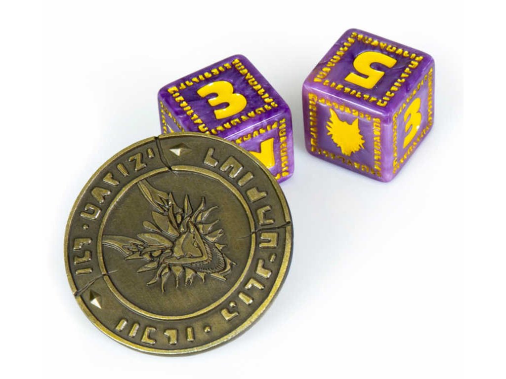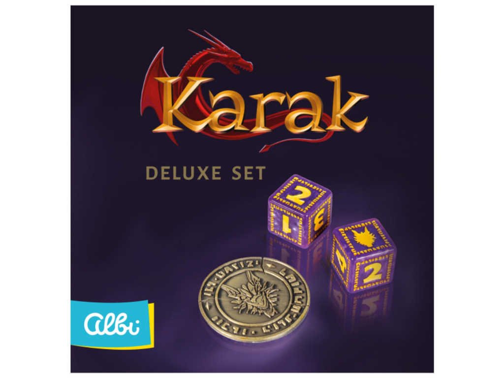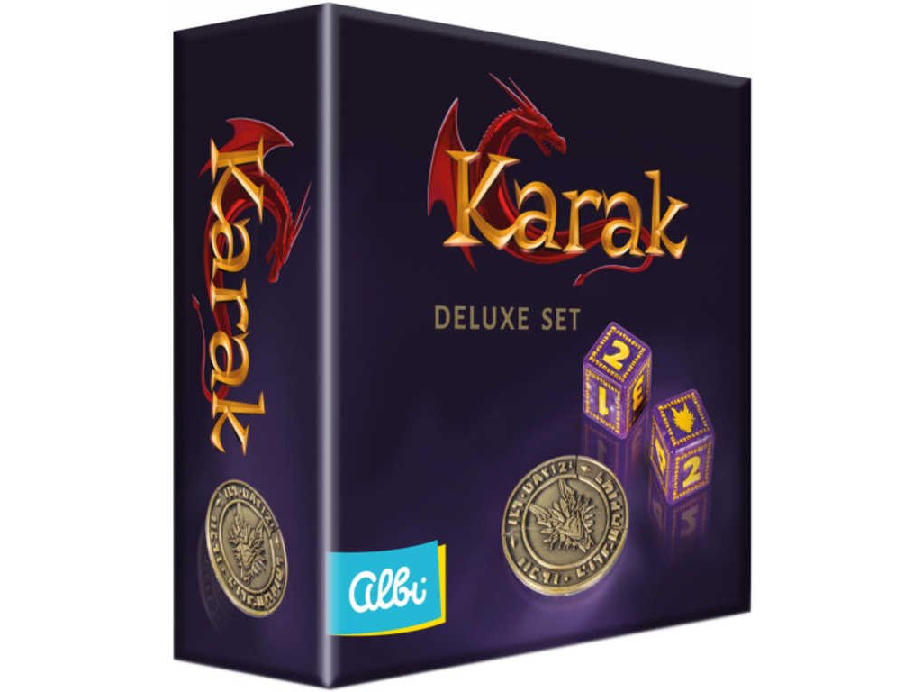 Karak: Deluxe set obsahuje exkluzivní komponenty pro vaši oblíbenou hru. Najdete v něm 2 šestistěnné kostky v Karak designu s dračí hlavou místo čísla 6 a kovový žeton prokletí se škorpionem na lícové straně a dračí hlavou na straně rubové.Rozměry balení (š v h): 27,5 x 27,5 x 5cm