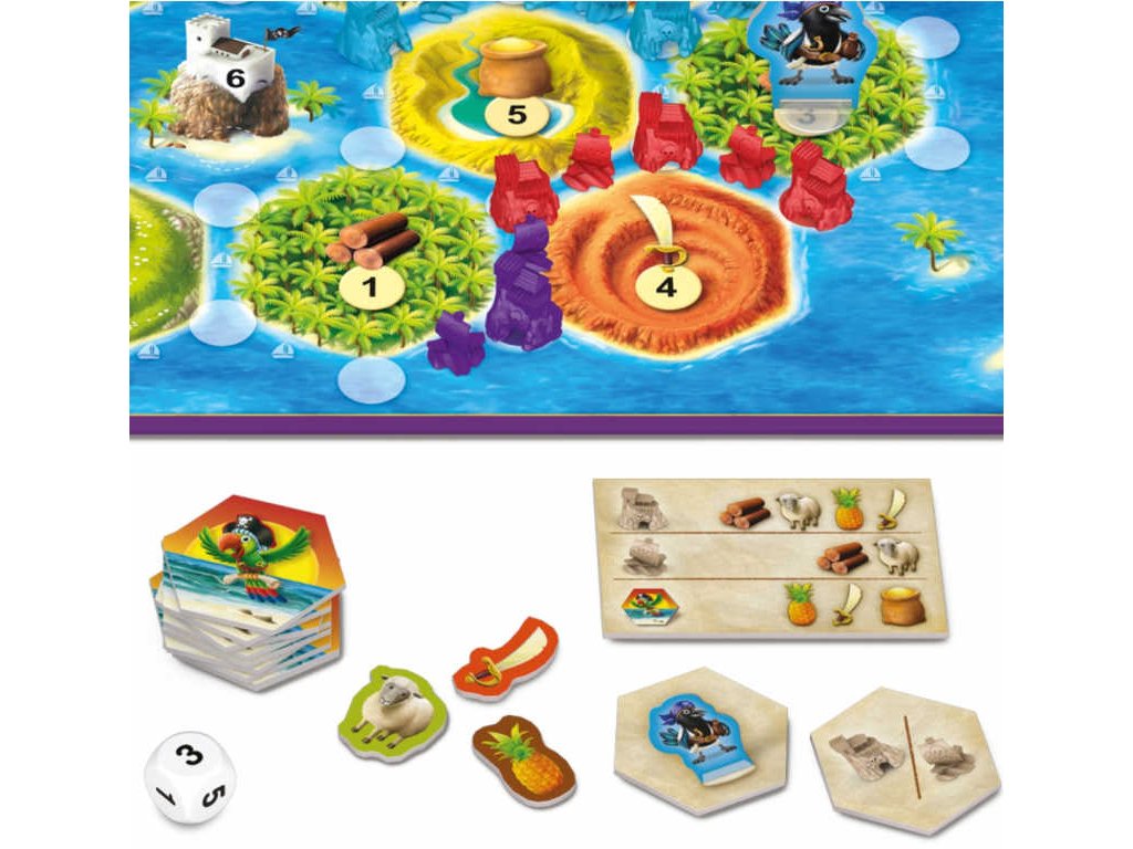 Juniorská verze Osadníků z Katanu.Dávno před tím, než na ostrov Katan dopluli první osadníci, se v jeho okolí pohybovaly skupiny nebezpečných pirátů. V této hře se stanete vůdcem jedné z nich. Budete stavět pirátská doupata, získávat zásoby, prohánět se na rychlých lodích a také obchodovat s ostatními piráty. Ale pozor, po ostrovech se také potuluje zákeřný duch černého piráta, který vám s chutí naruší vaše plány. Vydejte se vstříc dobrodružství a staňte se největším pirátem celého souostroví!