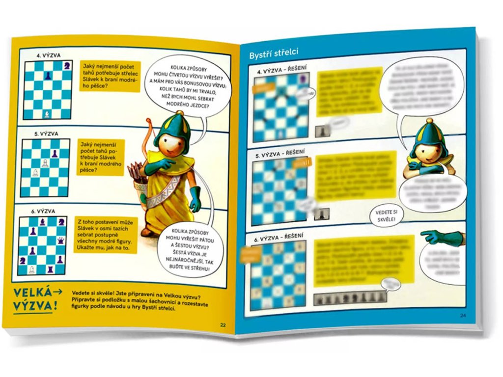 Balení obsahuje: oboustrannou herní desku, edukativní podložku pod šachovnici, 2 sady hracích figurek, výukovou brožuru, list zajímavostí ze světa šachů