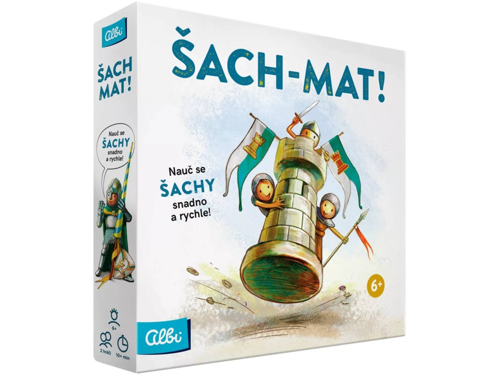 ALBI Společenská desková hra Šach-Mat! Nauč se hrát šachy snadno a rychle!Výuková sada Šach Mat! vás pomocí jednoduchých miniher naučí, jak se která figurka na šachovnici pohybuje a díky tomu se rychle naučíte, jak plnohodnotně hrát šachy.
