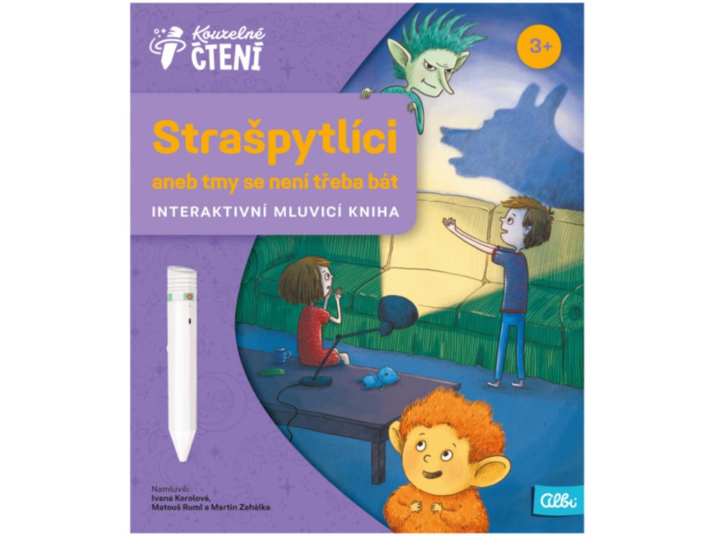Strašpytlíci aneb tmy se není třeba bát - Interaktivní mluvicí kniha z produktové řady "Kouzelné čtení" od Albi.Seznamte se se sourozenci Apolenkou a Jáchymem a s jejich strašidláckými parťáky Strašilínou a Chlácholínem, kteří děti provází jejich obavami ze tmy. Mluvicí kniha Strašpytlíci aneb tmy se není třeba bát je vhodná pro děti již od 3 let. Zábavnou formou je učí, že jsou věci a situace, které mohou být úplně jiné, než se na první pohled zdají. Budete se s nimi trošku bát, hodně smát, ale hlavně objevíte spoustu tajemství skrývajících se pod rouškou tmy! Kniha obsahuje přes 1500 zvuků a textů.