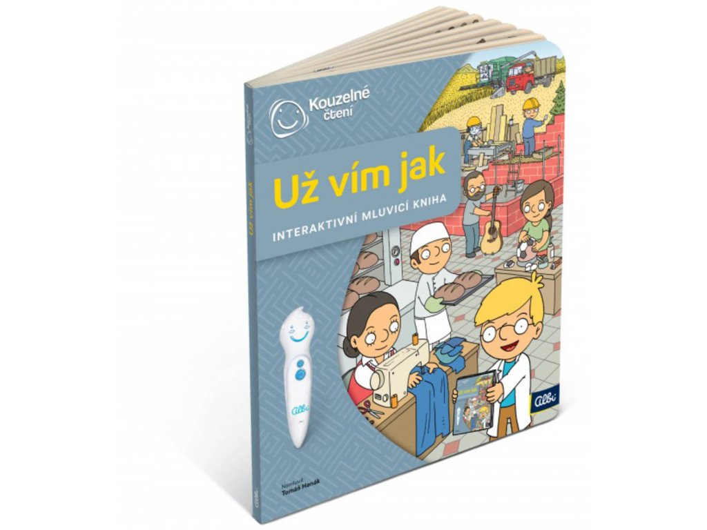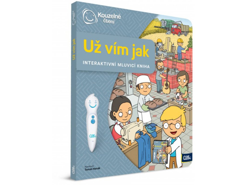 Už vím jak - Interaktivní mluvicí kniha z produktové řady "Kouzelné čtení" od Albi.Také vás vždy zajímalo, jak se vyrábí různé věci kolem nás? Jak se staví dům, jak se vyrábí jídlo, nádobí, oblečení nebo zábava? A v neposlední řadě: jak vlastně vznikla tato mluvící kniha? Na všechny tyto otázky a mnoho dalších vám odpoví průvodce Vojta, který knihu Už vím jak z edice Kouzelné čtení sám napsal a namaloval a objevuje se na jejich stránkách. Najdete ho všude? Vojta vám to vysvětlí. Kniha Už vím jak obsahuje přes 2 500 zvukových stop.