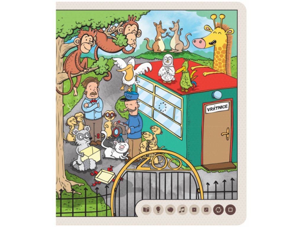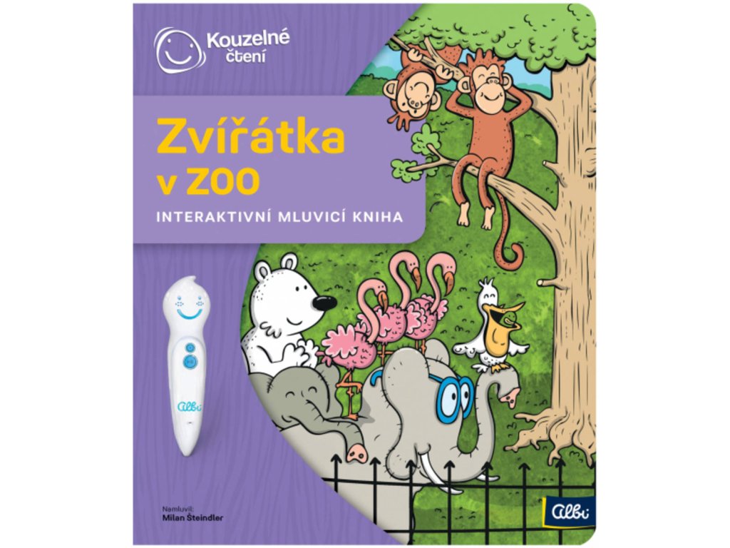 Zvířátka v ZOO - Interaktivní mluvicí kniha z produktové řady "Kouzelné čtení" od Albi.Interaktivní mluvící dětská kniha Zvířátka v ZOO z edice Kouzelné čtení zavede děti od 3 let do jedné malé zoologické zahrady, kde na vrátnici pracuje pan Votýpka. Pan Votýpka je velmi oblíbený u všech zvířátek v ZOO, a tak není divu, že když se blíží den jeho narozenin, zvířátka by mu ráda dala nějaký dárek. Zaposlouchejte se do příběhu šneka Augustýna. Poví vám, jaký narozeninový dárek zvířátka pro pana Votýpku vybrala a jak ho pořídí, když nemají peníze. V knize si poslechnete rytmickou písničku a nechybí ani zábavné kvízy ve 2 obtížnostech. Kniha Zvířátka v ZOO obsahuje přes 1200 zvuků a textů.