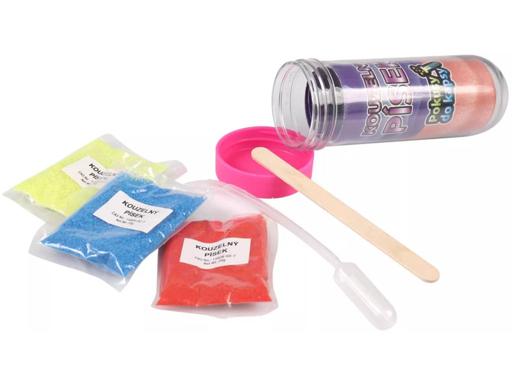 Obsah balení: 3 pytlíky kouzelného písku ve 3 barvách, míchací tyčinka, kapátko