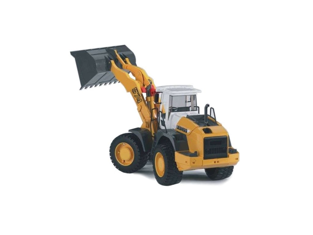 Čelní nakladač LIEBHERR L574 je velmi kvalitně zpracovaný model! Přední náprava se společně s nakladačem otáčejí na obě strany, předním nakladačem se pohybuje pomocí jedné z páček, druhá