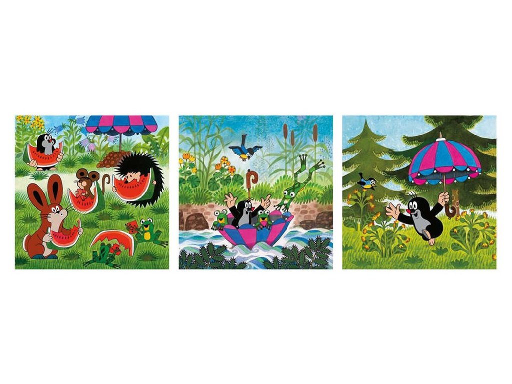 Dětské puzzle s třemi obrázky po 55 dílcích s motivy Krtečka s paraplíčkem 3 v 1.Skládání puzzle je oblíbená zábava. Puzzle můžete složit, znovu rozebrat a později si to zopakovat nebo obrázek třeba slepit a použít jako dekoraci na stěnu. Puzzle je hra oblíbená napříč věkovými skupinami - oblíbily si ji jak děti tak i zkušení mistři ve skládání. Puzzle v rámečku je velmi oblíbené u nejmenších dětí.