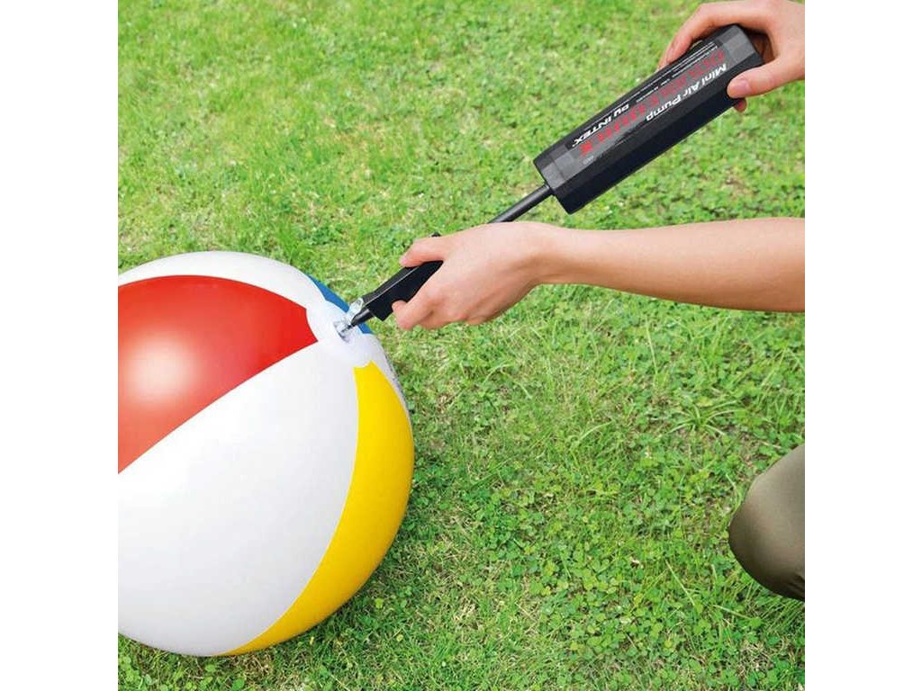 INTEX 69613Přenosná ruční mechanická vzduchová mini pumpa. Pumpuje vzduch při tahu vzhůru i při pohybu dolů Flexibilní hadička se 3 násadami je použitelná pro většinu ventilků. Vhodná na foukání malých