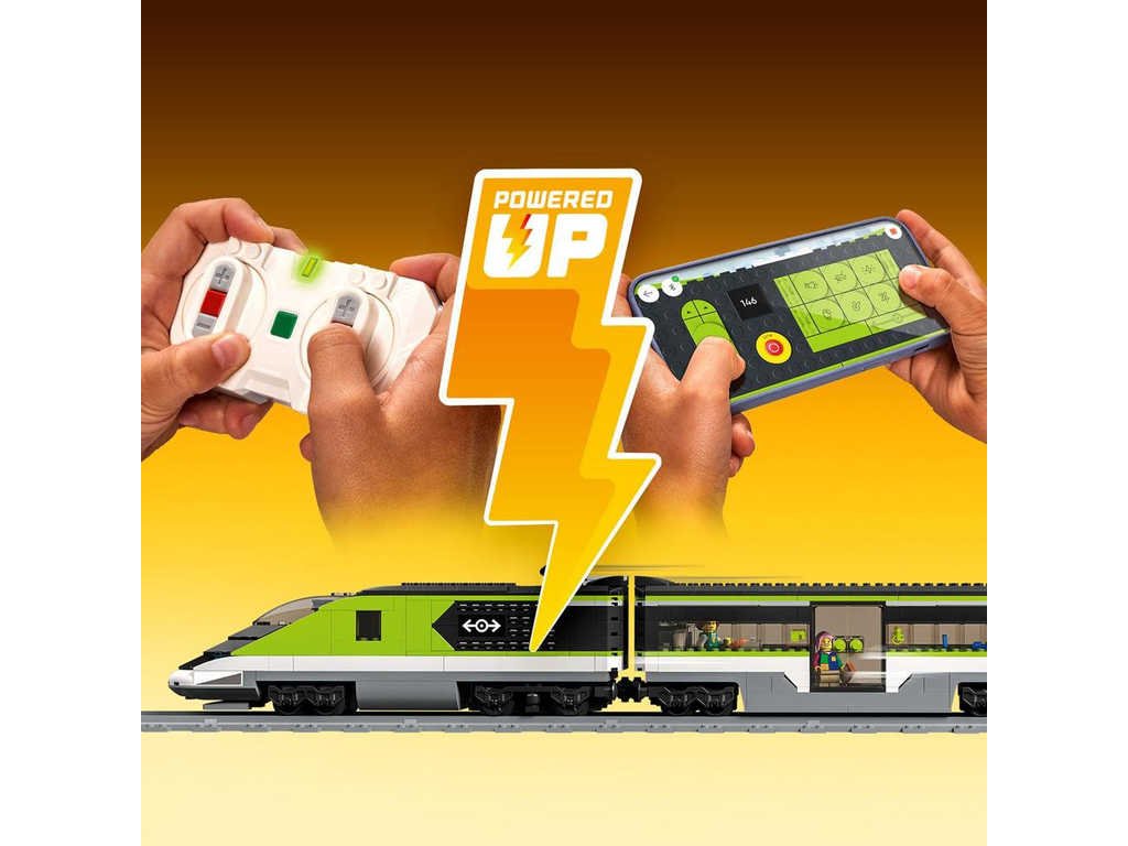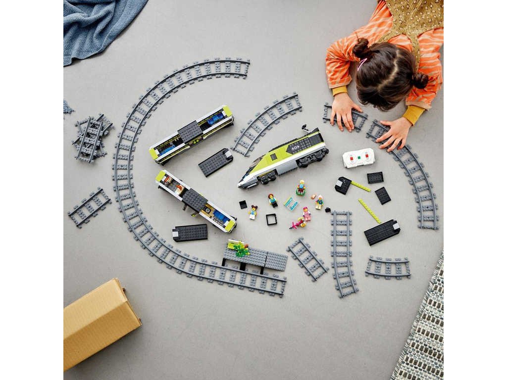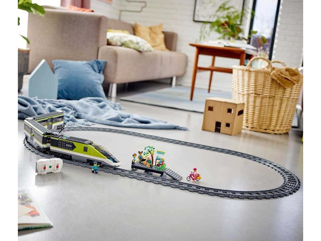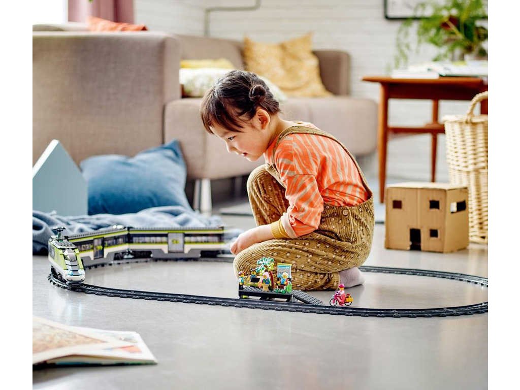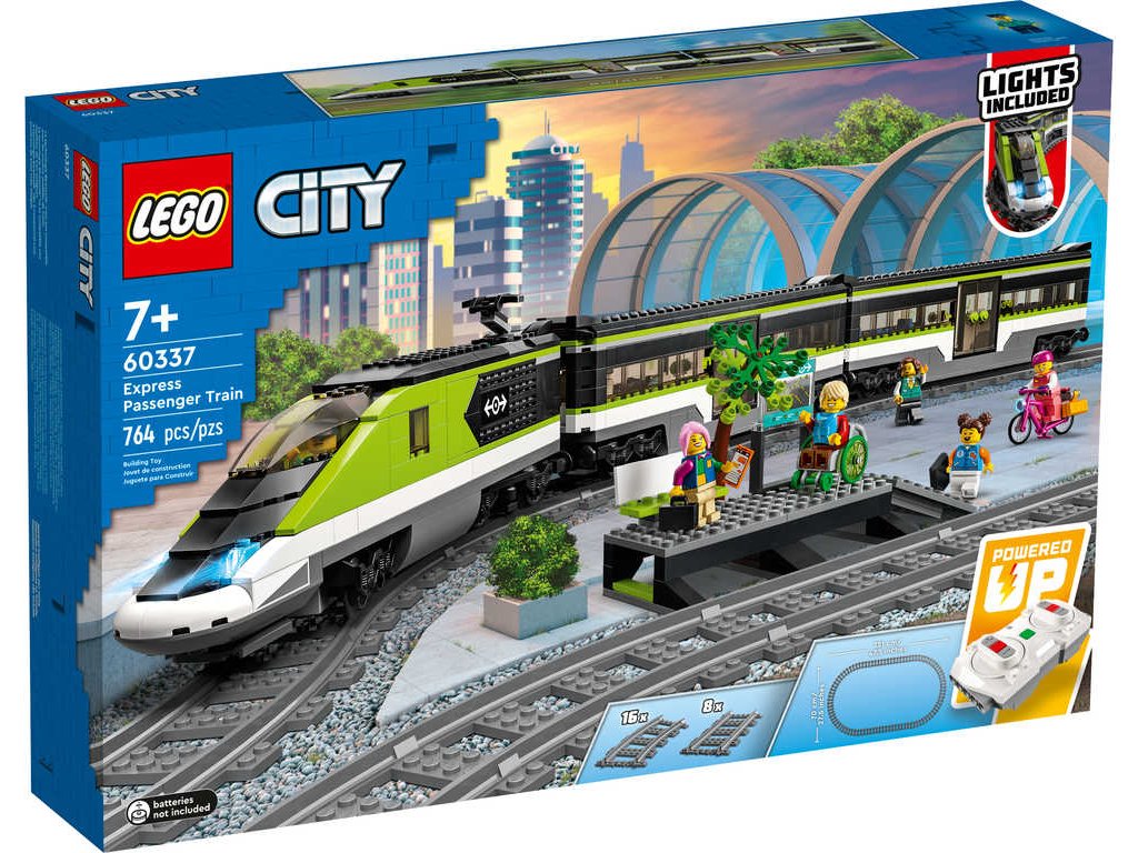 LEGO 60337 - Expresní vláček z produktové řady LEGO CITY - Dětské plastové kostky v krabici. Hračka na baterie, se světlem.Stavebnice Expresní vláček obsahuje dálkově ovladatelnou lokomotivu s technologií LEGO Powered Up a funkčními světlomety, jídelní a osobní vůz, nástupiště, 24 dílů kolejí a 6
