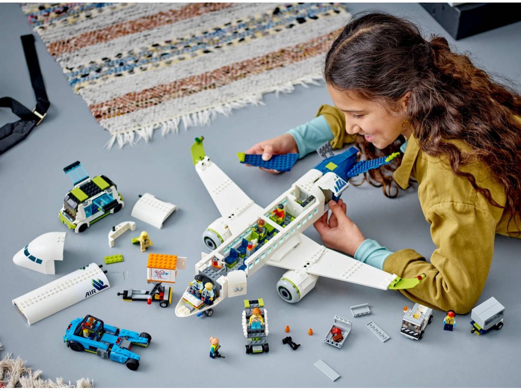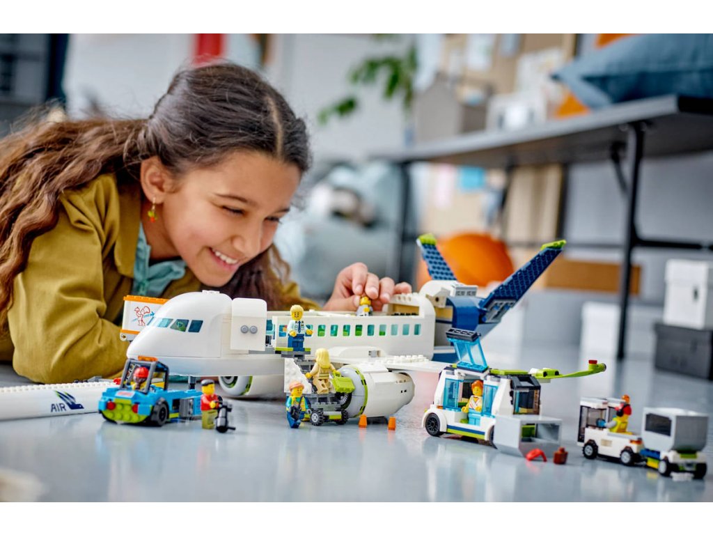 LEGO 60367: Osobní letadlo z produktové řady LEGO CITY - Dětské plastové kostky v krabici.Krásný dárek pro fanoušky modelů letadel. Stavebnice Osobní letadlo je plná realistických detailů a funkcí. Elegantní model letadla se pyšní propracovaným interiérem s kokpitem, sedadly, uličkou a toaletou a nechybí ani schody k letadlu, letištní autobus, tahač letadel, vůz s občerstvením, zavazadlový vozík a 9 minifigurek.