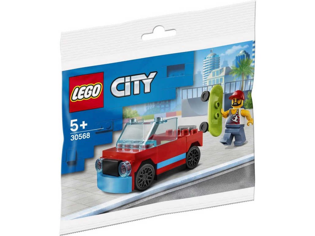 LEGO 30568 - Skejťák s autem z produktové řady LEGO CITY - Dětské plastové kostky v sáčku.Cesta do skateparku nikdy nebyla snažší. Tenhle malý kabriolet Vás tam odveze bleskurychle a na skateboardu můžete strávit hned celý den.
