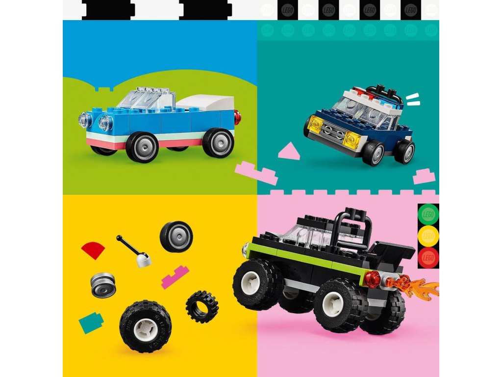 LEGO 11036 - Tvořivá vozidla z produktové řady LEGO CLASSIC - Dětské plastové kostky v krabici.Malí nadšenci do aut od 5 let si přímo zamilují stavebnici Tvořivá vozidla. Z této inspirativní sady pestrobarevných dílků a kostek lze postavit řadu vozidel a v balení najdete také jednoduché návody na sestavení neomezeně přestavitelných vozů. S touto stavebnicí s 900 kostkami, speciálními dílky, 52 koly a jednoduchými návody se děti mohou vrhnout do stavění modelu policejního auta, zmrzlinářského vozu, čtyřkolky, čelního nakladače, nákladního auta, kombi osobního auta, terénního vozu a limuzíny. Malí stavitelé mohou upravovat modely podle vlastních stylů, přidávat parádní detaily nebo barevné ozdoby a vytvářet zcela nová vozidla. Součástí je 10 inspirativních tipů na stavění. Děti najdou návody také v aplikaci LEGO Builder, kde lze přibližovat a otáčet modely a sledovat postup.