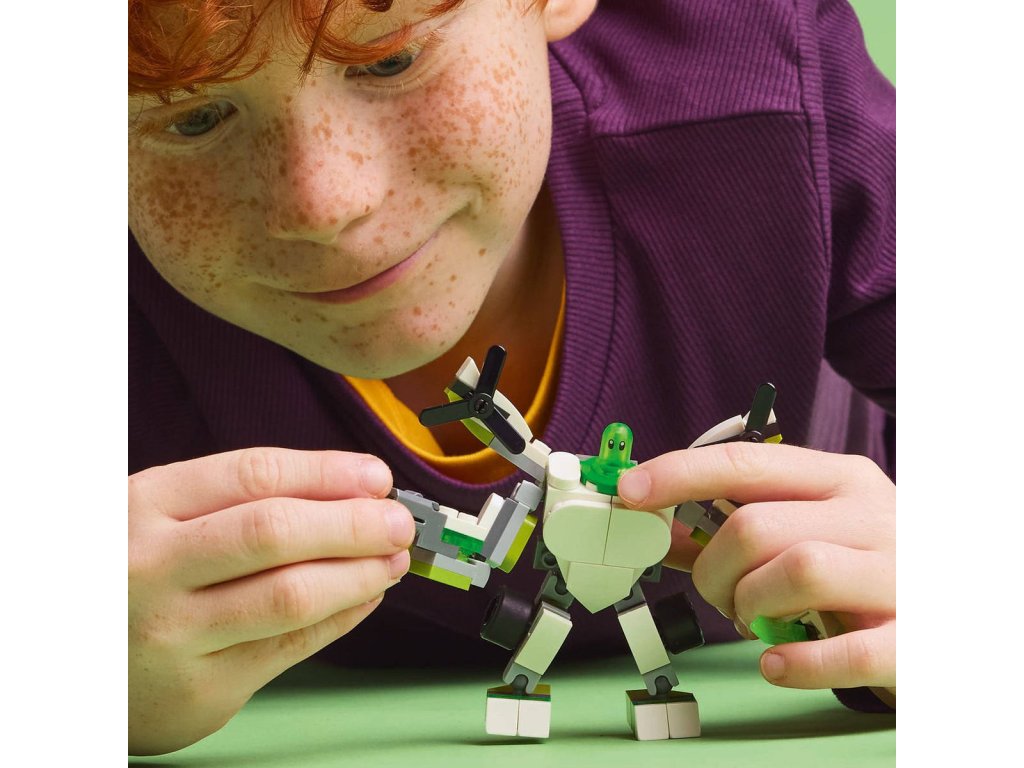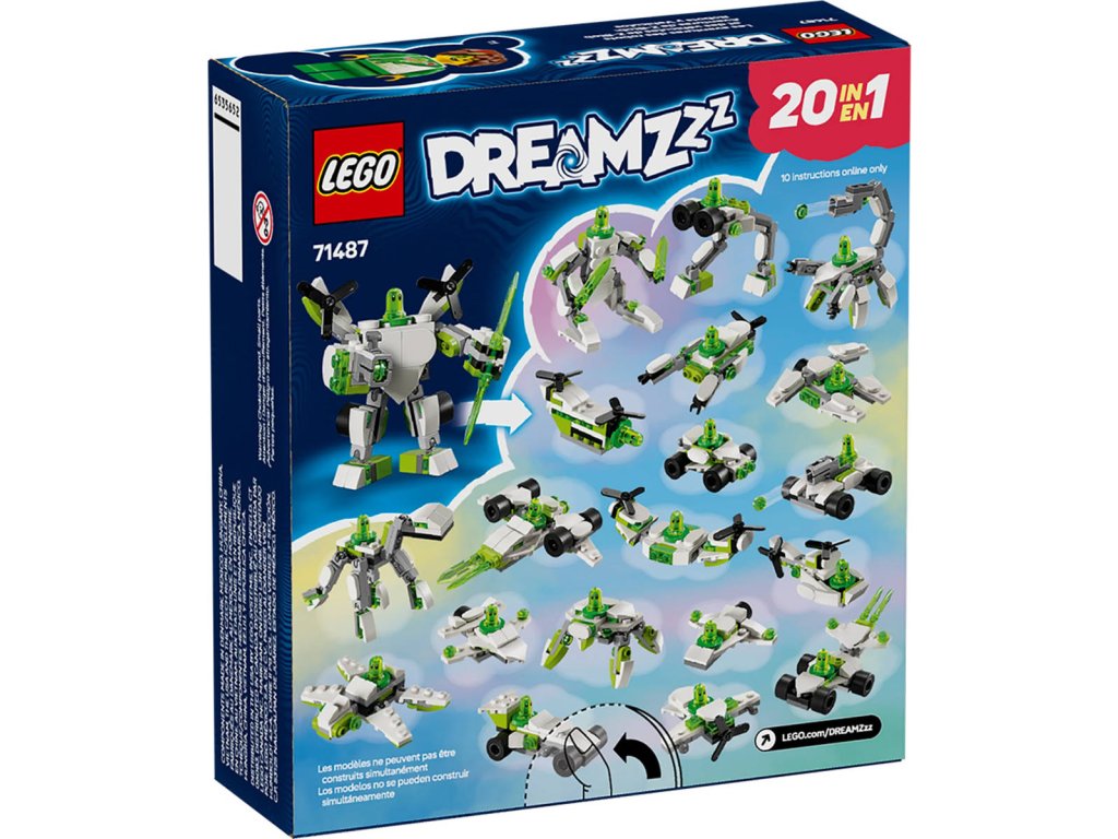 LEGO 71487 - Z-Flekova dobrodružství s roboty a vozidly z produktové řady LEGO DREAMZZZ. Dětská plastová stavebnice v krabici. 20v1 (20in1).Nastartujte dětskou fantazií se stavebnicí Z-Flekova dobrodružství s roboty a vozidly pro kluky a holky od 7 let, která jim nabízí 20 úžasných způsobů stavění parádních robotů a vozidel. Hlavním modelem v této stavebnici je robot Z-Flek. Malí snílci si užijí stavění a pak objeví 19 úžasných možností, jak ho přestavit. Mezi některé z jiných robotů a vozidel patří vrtulník, závodní auto, robot, turbo tryskáč a škorpion. Modely obsahují úžasné detaily, jako jsou pohyblivé nohy, ruce, chodidla a křídla, otočné vrtule a vystřelovač. Součástí stavebnice je také minifigurka Matea, která rozproudí kreativní hraní. Tento skvělý dárek pro děti a fanoušky televizního seriálu LEGO DREAMZzz s robotem a vozidlem obsahuje návod na stavění vedený příběhem. Malí snílci se ponoří do napínavých dobrodružství plných akce s Mateem a Z-Flekem