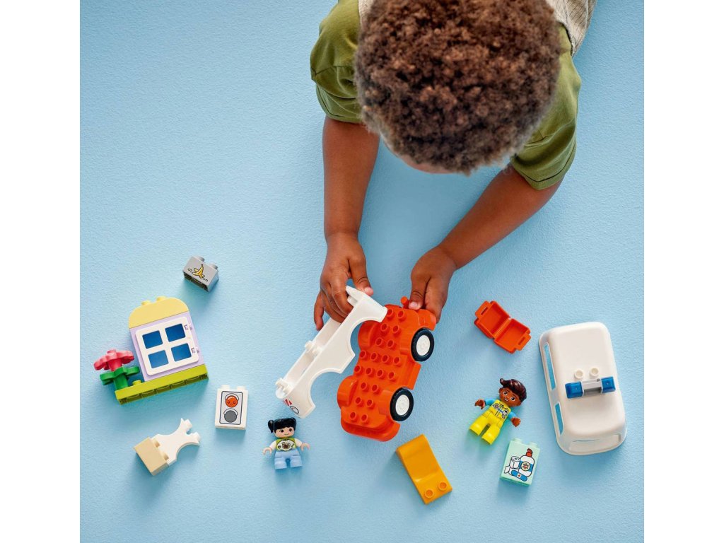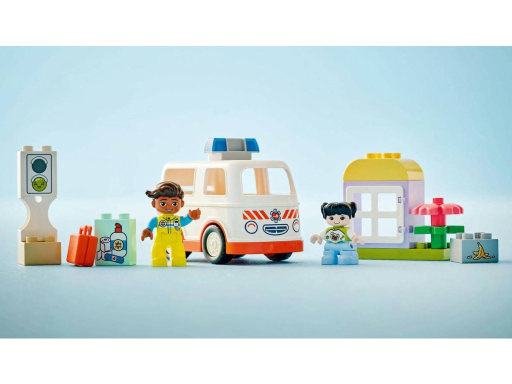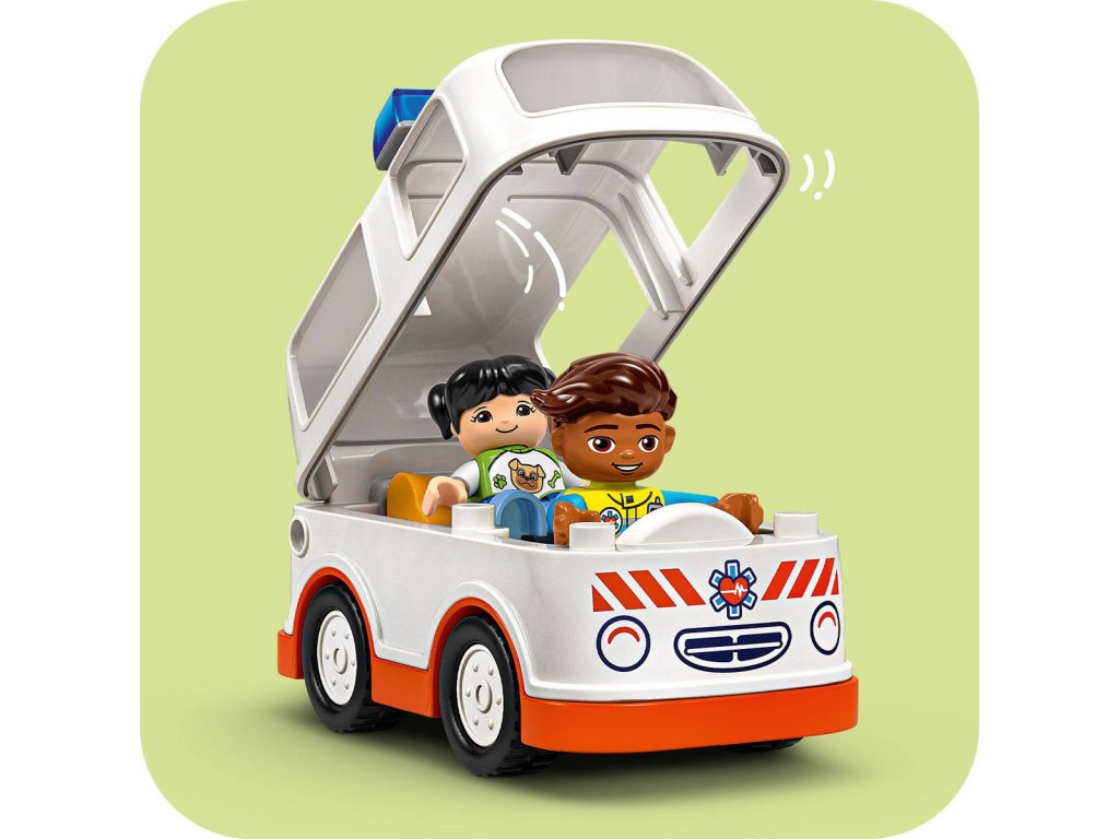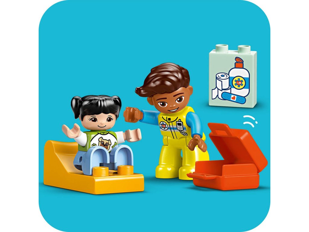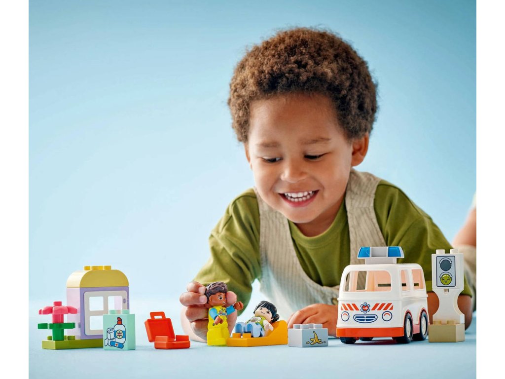 LEGO 10447 - Auto sanitka a řidič z produktové řady LEGO DUPLO - Dětská plastová stavebnice v krabici.Starostlivé děti si užijí hraní napínavých záchranářských scén se stavebnicí Sanitka a řidič. Součástí je pojízdná sanitka a 2 figurky LEGO DUPLO, záchranář a dívka, se kterými si děti užijí kreativní hru na postavy. Tato kreativní hračka LEGO DUPLO představuje skvělý dárek pro malé děti, které mají rády hry na rozvoj sociálních a emočních dovedností, a pomůže jim prohlubovat empatii. Součástí návodu na stavění je tištěné herní kolečko, se kterým rodiče a děti prozkoumají různé emoce postavičky holčičky. Děti s jeho pomocí vyjádří své pocity při tom, když se někdo necítí dobře, nebo jak se cítily, když poprvé viděly sanitku. Stavebnice také pomáhá rozvíjet logické myšlení při sestavování sledu událostí a jemné motorické dovednosti při otevírání střechy sanitky, přes kterou umístí figurku na sklápěcí lůžko. Tato vzdělávací hračka také pomáhá malým dětem rozvíjet sociální dovednosti při rozhodování, jak bude řidič sanitky zacházet s pacientkou.