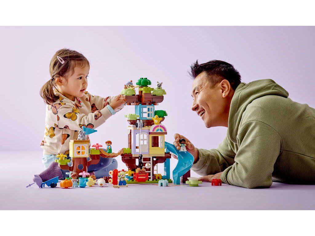 Děti nejprve postaví dechberoucí dobrodružný prostor na hraní se 3 patry, extra dlouhou skluzavkou a vratkým mostem. Pokud se začnou stahovat dešťové mraky, model lze přeskládat na útulný dům na stromě. Třetí model se skládá ze 2 domů na stromě, z nichž každý má vlastní skluzavku, a zahrádky, kde děti mohou sbírat ovoce a nosit je domů pomocí roztomilé kladky.