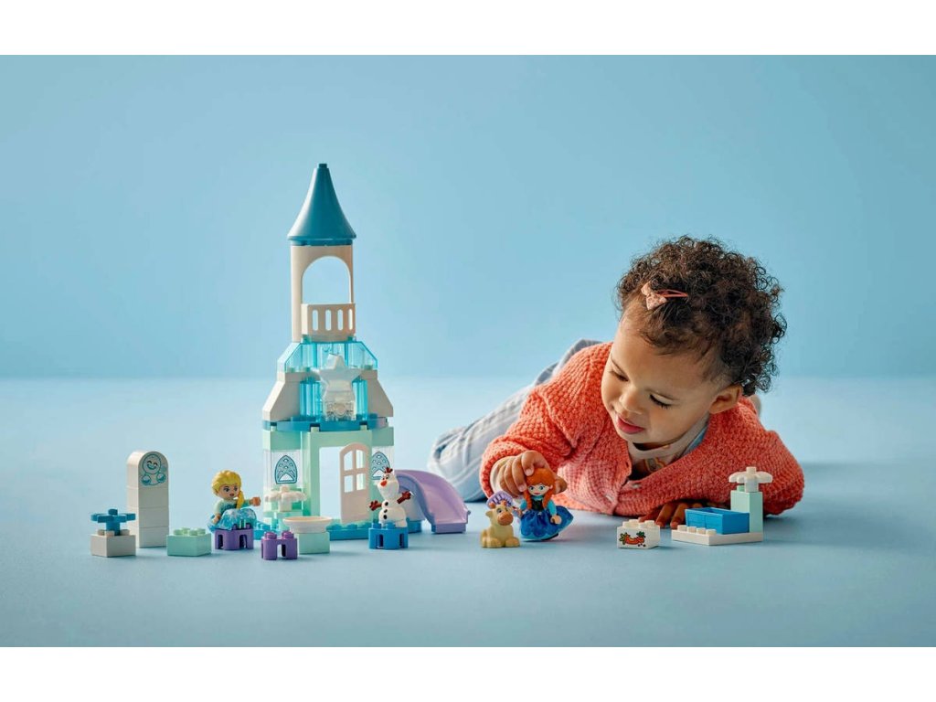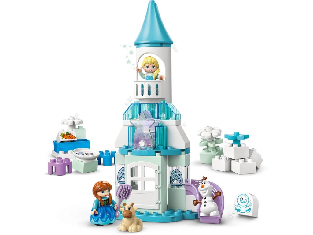 LEGO 10445 - Frozen (Ledové Království): Anna a Elsa a oslava na hradě z produktové řady LEGO DUPLO - Kvalitní dětská plastová stavebnice v krabici.Ponořte se se svými ratolestmi do světa kreativního hraní se stavebnicí Ledové království: Anna a Elsa a oslava na hradě pro batolata. Součástí jsou postavy LEGO DUPLO - Disney Elsy, Anny, sněhuláčka Marshmallowa, malého Svena a Olafa, se kterými si děti užijí nekonečné možnosti hraní na život na hradě a péči o malého Svena. Při stavění modelu hradu si malé děti procvičí jemnou motoriku. Tato fantasy stavebnice obsahuje doplňky, které malé děti i dospělé inspirují k zábavnému hraní na péči o mládě soba, při kterém zapojí fantazii. Tato vzdělávací stavebnice pro malé děti se pyšní řadou detailů, které stimulují jejich smysly. Elsa a Anna mají oblečené látkové sukně, které jsou příjemné na dotek. Najdete tu i výklopné dveře, které mohou malé prstíky otevřít a prozkoumat tak interiér hradu z filmu Ledové království. Stavebnice obsahuje také barevnou světelnou kostku, která představuje polární záři.