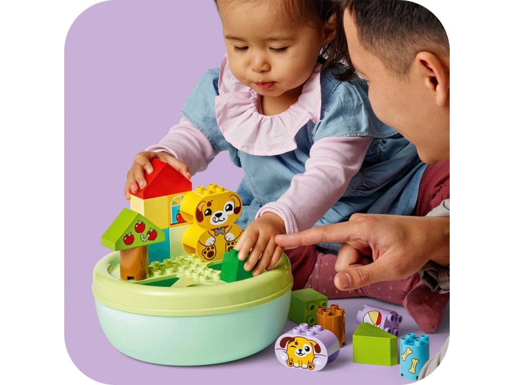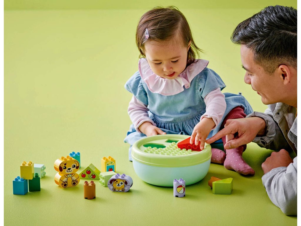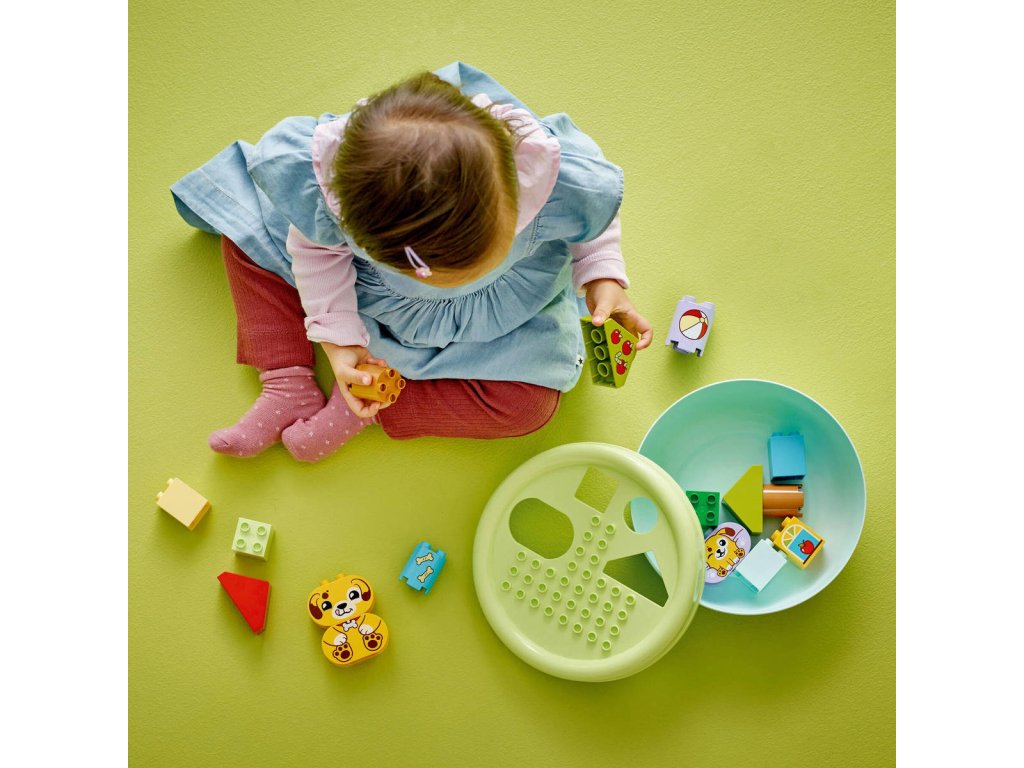 LEGO 10441 - Třídění tvarů: Domeček pro štěňátka z produktové řady LEGO DUPLO - Kvalitní dětská plastová stavebnice v krabici.Darujte malým milovníkům pejsků kouzelnou stavebnici Třídění tvarů: Domeček pro štěňátka, která přináší hned dvě možnosti hraní. Tato hračka pro děti od 18 měsíců pomáhá rozvíjet jemnou motoriku a děti s ní objeví nové tvary. Stavebnice navíc rozvíjí dovednost řešení problémů, když děti z kostek postaví místo na hraní pro štěňátka a pak si vyzkouší vhazování kostek různých tvarů do víka misky. Tento dárek pro batolata pomáhá rozvíjet prostorovou orientaci a je nabitý zábavnými vzdělávacími aktivitami pro celou rodinu. Rodiče můžou dětem ukázat všechny tvary v balení, které pak malí stavitelé použijí ke stavění stromů, figurek psů a dokonce i domu. Pak si užijí kreativní hraní s roztomilými pejsky LEGO DUPLO, hodí jim míč a nakrmí je kostí. Až nápadité stavitelské dobrodružství skončí, děti si užijí spoustu zábavy při třídění tvarů. Procvičí svou schopnost soustředění při hledání děr, do kterých se vejdou jednotlivé kostky. A pokud se jim to napoprvé nepovede, procvičí trpělivost a koordinaci očí a rukou při snaze najít ten správný otvor.