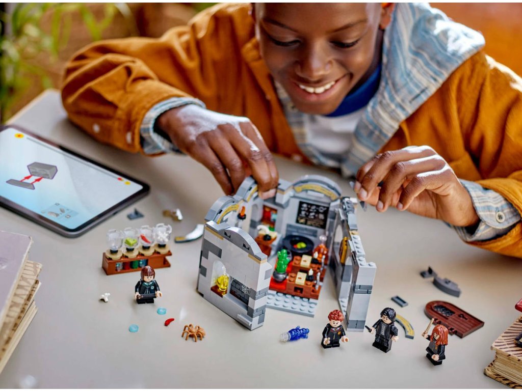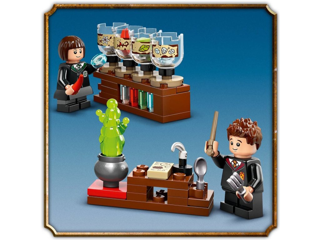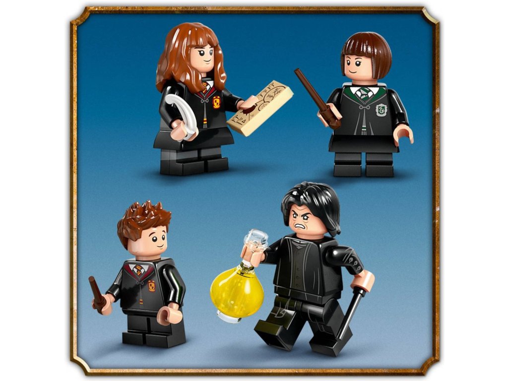 LEGO 76433 - Bradavický hrad Hodina lektvarů z produktové řady LEGO HARRY POTTER - Dětské plastové kostky v krabici.Zapište svou malou čarodějku, kouzelníka nebo mudlu na hodinu lektvarů na Bradavickém hradě s touto sběratelskou stavebnicí pro děti od 8 let. Sada obsahuje sestavitelnou učebnu ze světa Harryho Pottera, kterou lze otevřít pro snadný přístup. Prozkoumejte celou řadu autentických detailů – tabuli s postupy na výrobu lektvarů, lahvičkami s dílky představujícími přísadami do lektvarů, které můžete míchat v kotlíku, a dalším vybavením, které malé stavitele inspiruje ke kreativnímu hraní. Nechybí 2 ze 14 sběratelských bradavických portrétů a minifigurka LEGO profesora Severuse Snapea a studentů Hermiony Grangerové, Pansy Parkinsonové a Seamuse Finnigana, se kterými si děti připomenou příběhy z filmů o Harrym Potterovi. Tato kouzelná stavebnice je skvělý způsob, jak dětem a novým fanouškům Harryho Pottera představit svět čar a kouzel z kostek LEGO. Tato sada je součástí řady modulárních stavebnic LEGO Harry Potter (prodávají se samostatně), jejichž spojením vytvoříte ten největší Bradavický hrad z kostek LEGO vůbec.
