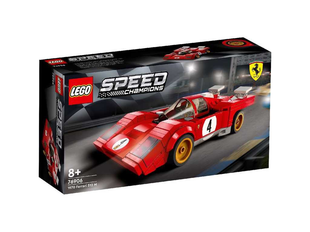 LEGO 76906 - Závodní auto Ferrari 512 M 1970 z produktové řady LEGO SPEED CHAMPIONS. Dětské plastové kostky v krabici.Stavebnice LEGO Speed Champions 1970 Ferrari 512 M dává dětem a milovníkům aut všech věkových kategorií možnost postavit si ikonické závodní auto a založit tak vlastní sbírku sběratelských vozů. Věrná
