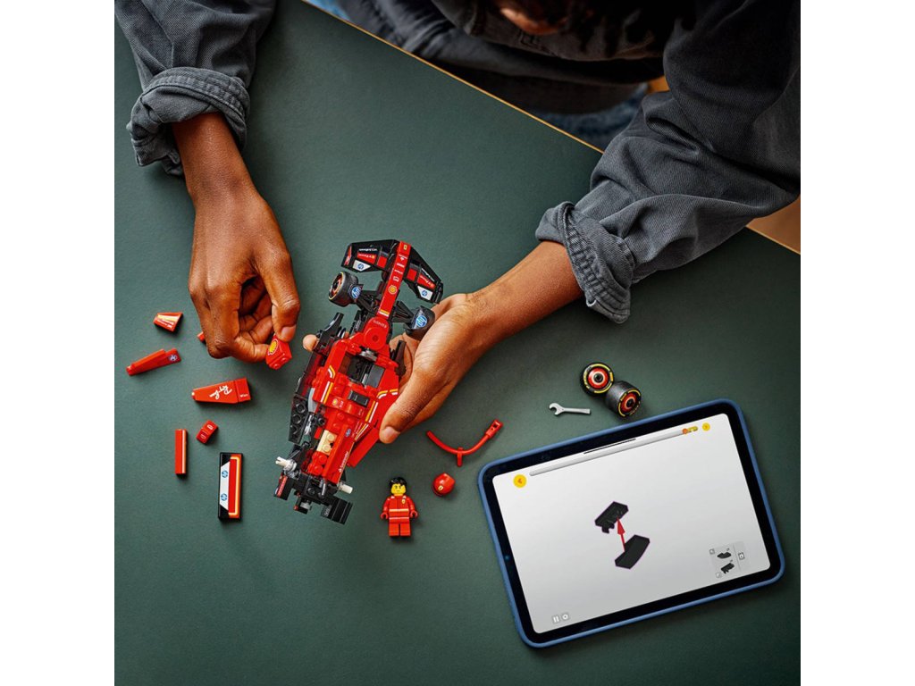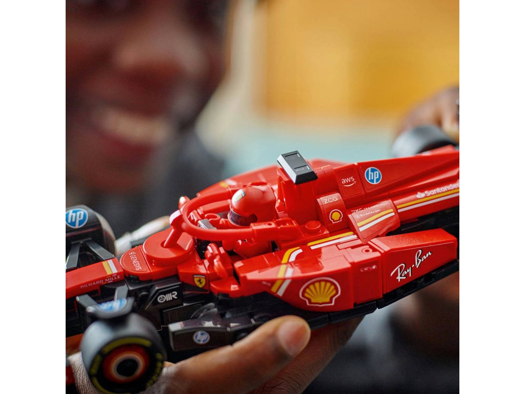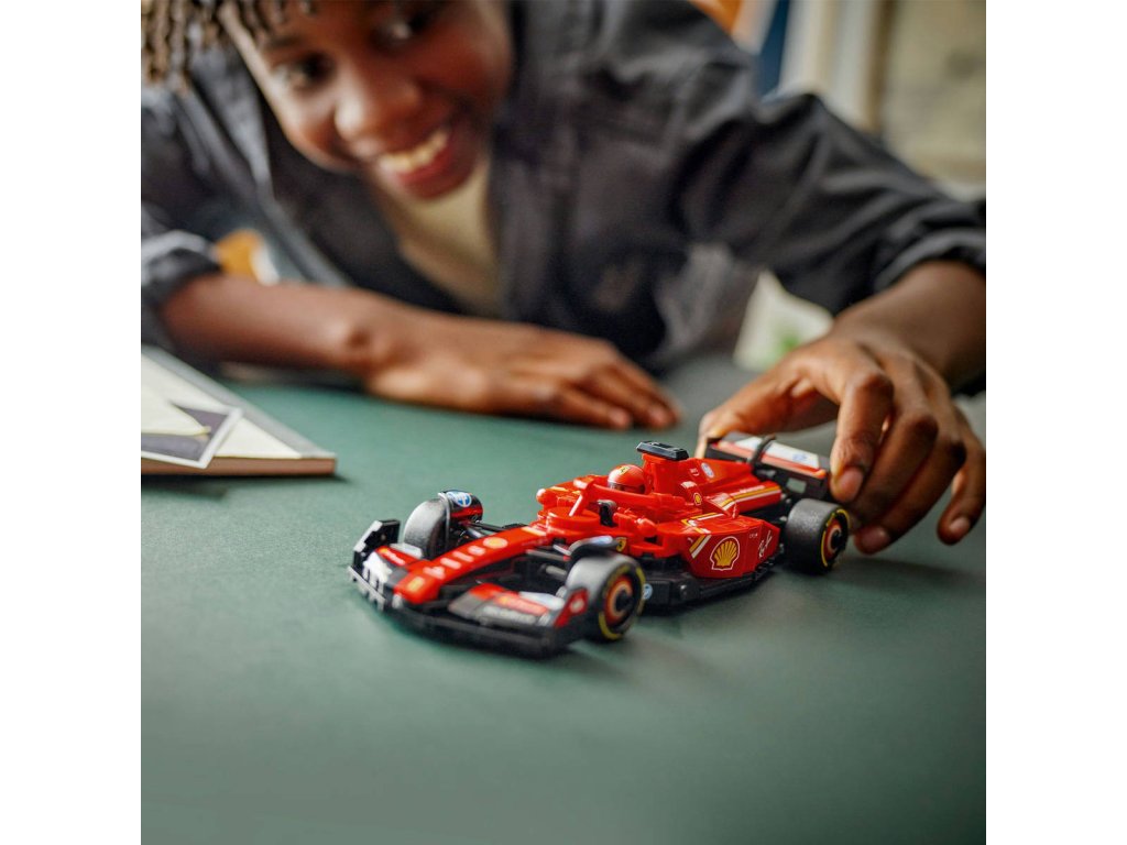 LEGO 77242 - Závodní auto Ferrari SF-24 F1 z produktové řady LEGO SPEED CHAMPIONS - Kvalitní dětská plastová stavebnice.Kluci a holky od 10 let se můžou těšit na napínavé závody Formule 1 s touto úžasnou stavebnicí Závodní auto Ferrari SF-24 F1 s řidičem. Model vozu Ferrari se pyšní detaily inspirovanými skutečným vozem, který soutěžil ve Formuli 1 v roce 2024, a děti i dospělí sběratelé aut si ho můžou postavit, vystavit a závodit s ním. Tento model vozu F1 má kokpit, který lze otevřít zvednutím svatozáře, zadní křídlo, rovnoběžníkovou nápravu, polepy sponzorů a širší zadní pneumatiky s nápisem „Pirelli“. Součástí závodního auta F1 je také minifigurka jezdce v outfitu Ferrari s okřídlenou helmou, kterou můžete umístit do kokpitu a šlápnout na plyn.