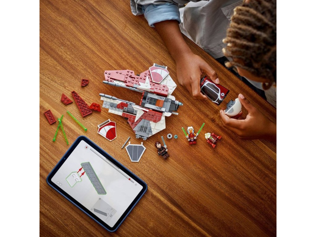 LEGO 75401 - Ahsoka a jediská stíhačka Interceptor z produktové řady LEGO STAR WARS - Dětská plastová stavebnice v krabici.Děti si postaví vlastní strhující dobrodružství ze světa Star Wars: Klonové války se stavebnicí Ahsoka a jediská stíhačka Interceptor. Tato parádní stavebnice LEGO Star Wars z kostek představuje skvělý dárek pro kluky, holky a fanoušky od 8 let a pyšní se otevíracím kokpitem, nastavitelnými křídly pro režim útoku a cestovní režim a 2 pružinové vystřelovače. Stavebnice obsahuje 2 minifigurky LEGO Star Wars – Ahsoku Tano a Anakina Skywalkera se světelnými meči a navíc figurku LEGO droida R7-A7 pro fantastické hraní. Ahsoku lze umístit do kokpitu jediské stíhačky. Na palubě je místo pro R7-A7 a úložiště pro Ahsočiny světelné meče. S aplikací LEGO Builder si děti užijí porci kreativní zábavy navíc a můžou si v ní přibližovat a otáčet digitální 3D verzi stíhačky Star Wars při stavění. Tuto stavebnici Star Wars lze kombinovat s dalšími sadami z rozsáhlé řady LEGO Star Wars (prodávají se samostatně).