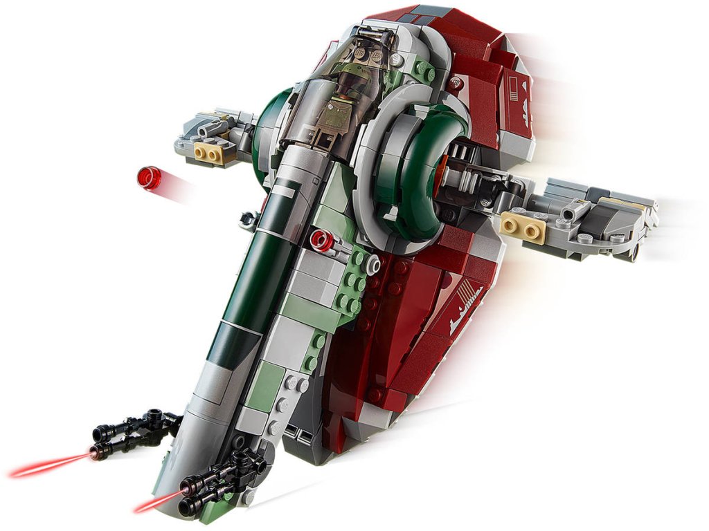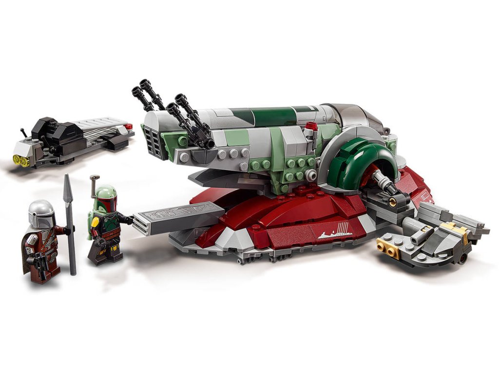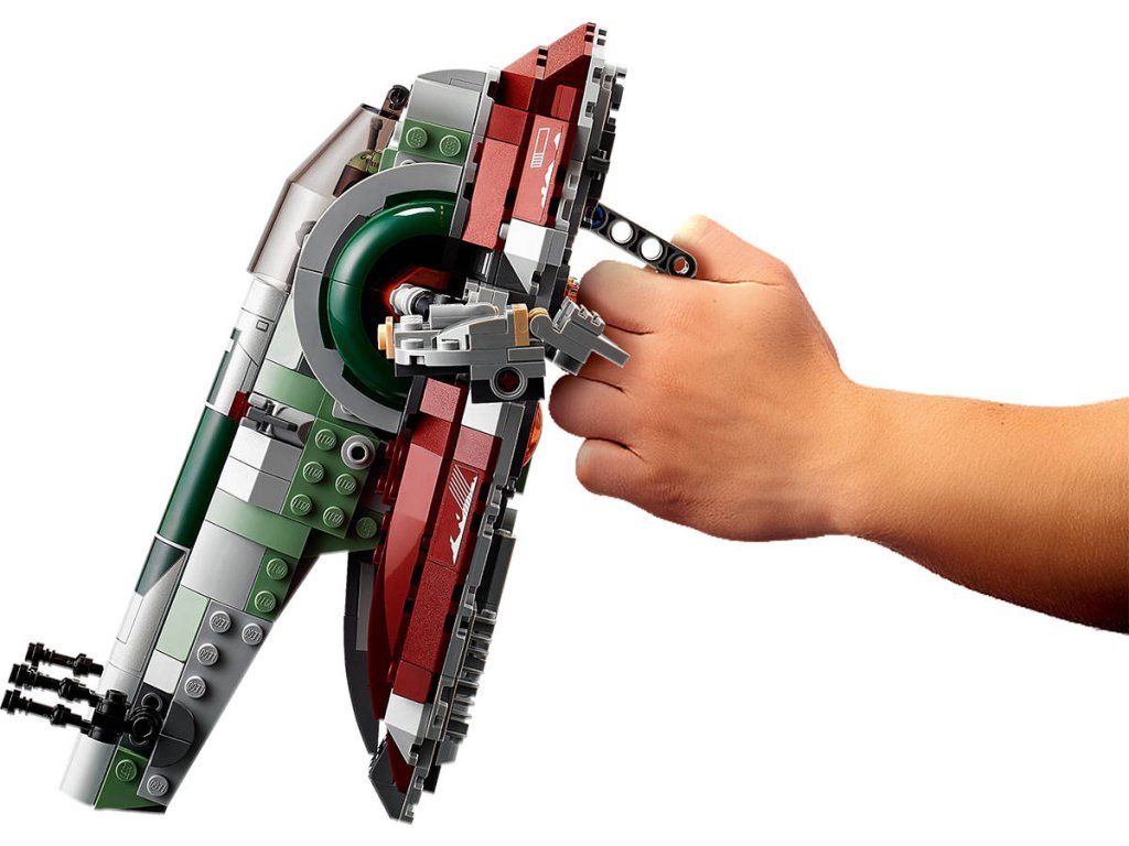 LEGO 75312 - Boba Fett a jeho kosmická loď z produktové řady LEGO STAR WARS - Dětské plastové kostky v krabici.S touto důmyslnou LEGO verzí kosmické lodi Boby Fetta si fandové Star Wars seriálu The Mandalorian mohou hrát na souboje a mise námezdního lovce odměn. Součástí modelu je rukojeť pro snadné létání, otevírací kokpit pro LEGO minifigurku, pohyblivá křídla, 2 vystřelovače a 2 otočná dvojitá děla (nevystřelují). Tato prémiová stavebnice obsahuje také LEGO minifigurky Boby Fetta a Mandaloriana se zbraněmi, navíc nechybí ani karbonitová kostka, která má na lodi své místo. Součástí sady je i transportér, kterým lze vesmírnou loď přemisťovat a který poslouží také jako podstavec, na kterém si lze model vystavit ve vertikální letové poloze. K dispozici je také srozumitelný návod, takže se sestavením si hravě poradí i LEGO stavitelé nováčci.