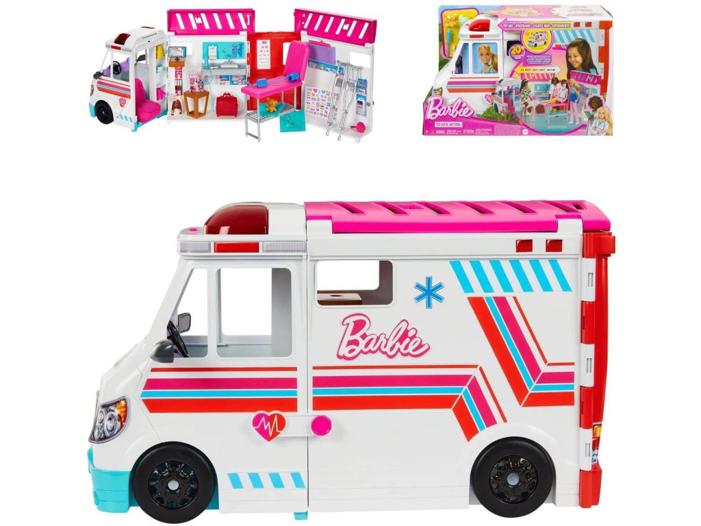 MATTEL BRB Barbie auto sanitka / klinika 2v1 na baterie Světlo Zvuk + Dárek zdarma