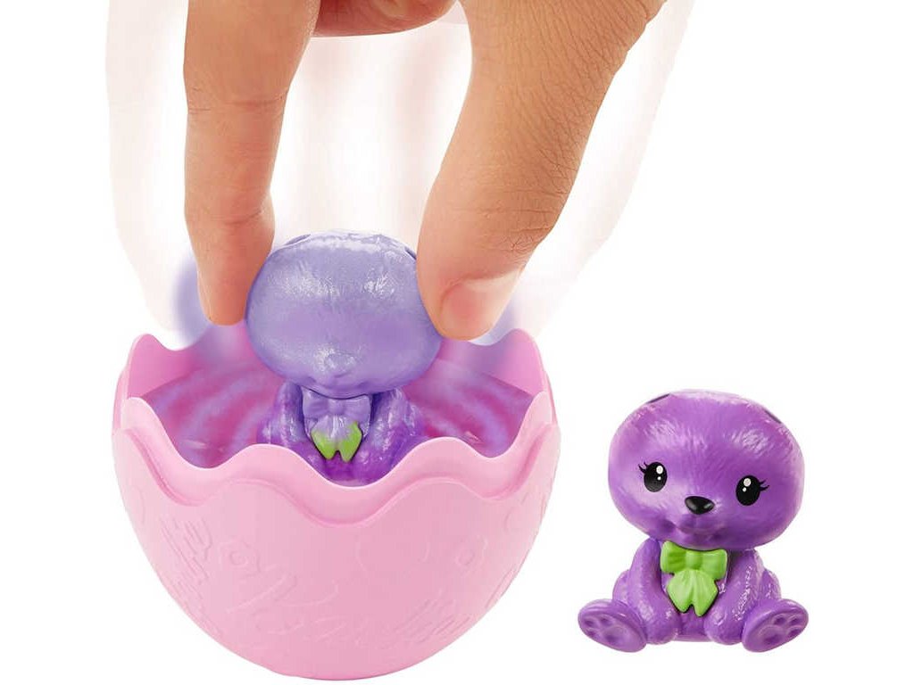 fialové barvě, v dalších kuřátko, košíček a vtipná zvířecí ouška. Ponořte zvířátko do teplé vody a odhalte jeho vzhled. A překvapením stále není konec. Po použití studené vody možná na zvířátku