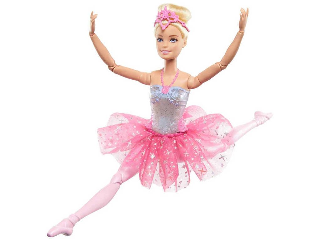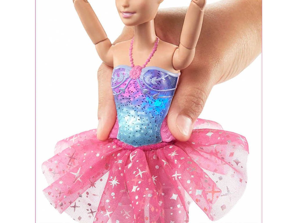 Tato Barbie Svítící magická baletka s růžovou třpytivou sukýnkou a čelenkou je vybavena kouzelnou svítící funkcí a kloubovým tělem pro inspirativní vyprávění příběhů a taneční hry. Živůtek se při stlačení barevně rozsvítí. Panenka neumí samostatně stát. Hračka na baterie, se světlem.Barbie je světově nejznámější a nejprodávanější panenka. Tuto populární panenku vyrábí společnost Mattel. Většina panenek Barbie a jejich příslušenství je vyráběna v poměru přibližně 1:6. Vynálezkyní panenky Barbie byla paní Ruth Handlerová. Vytvořila jí pro svou dceru Barbarru, po které panenku také pojmenovala. Barbie má romantický vztah se svým přítelem Kenem (Ken Carson), který se po jejím boku poprvé objevil již v roce 1961 v televizní reklamě.