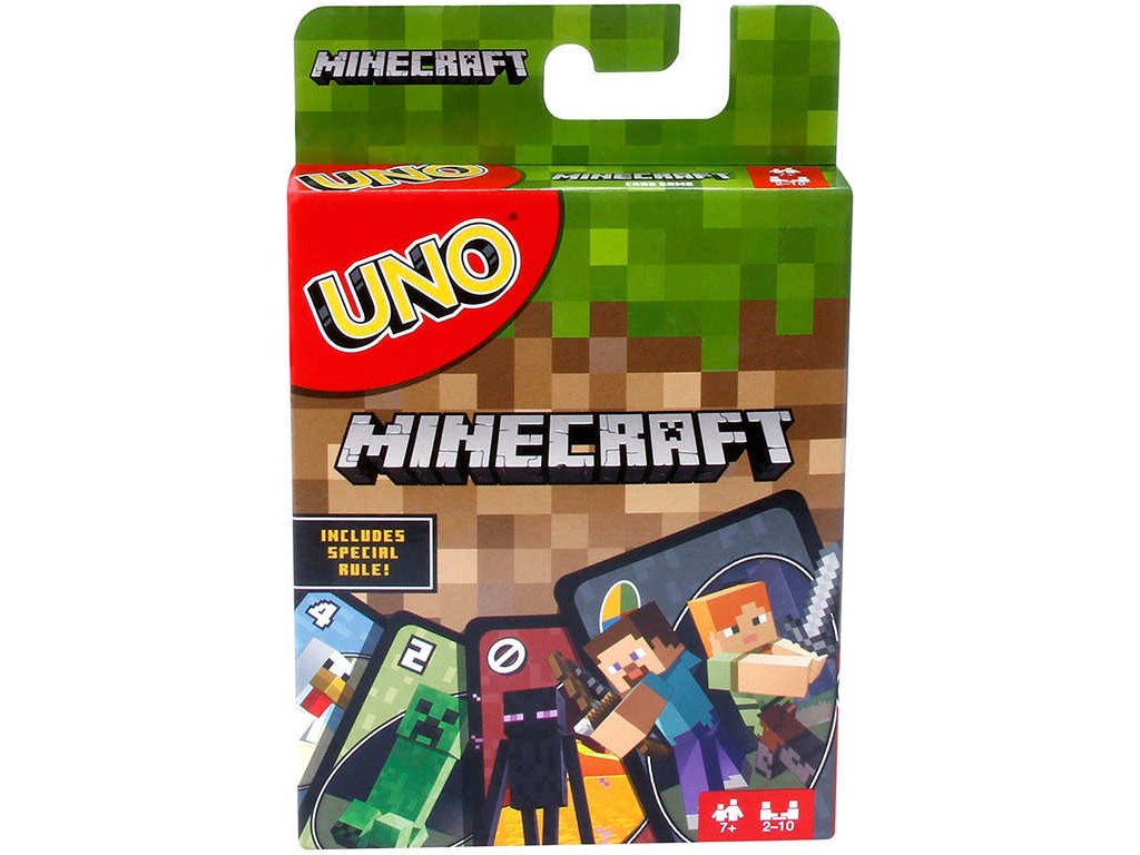 Stejně jako v tolik oblíbené karetní hře UNO™ i v UNO™ Minecraft je cílem hráčů se co nejrychleji zbavit všech karet. Tato verze přináší postavy a motivy z oblíbené hry Minecraft a její součástí je i speciální karta! UNO™ Minecraft navíc přináší nový typ akční karty. Jakmile vám v ruce zbývá poslední karta, nezapomeňte zakřičet „UNO“!Hrací karty Uno jsou karetní hra, kterou vymyslel v roce 1971 holič Merle Robbins z Readingu v americkém Ohiu. Hra měla velký úspěch a rozšířila se do většiny světa. Nyní ji vydává firma Mattel. Hra je velmi podobná české hře Prší nebo německé Mau Mau, na rozdíl od nich se však