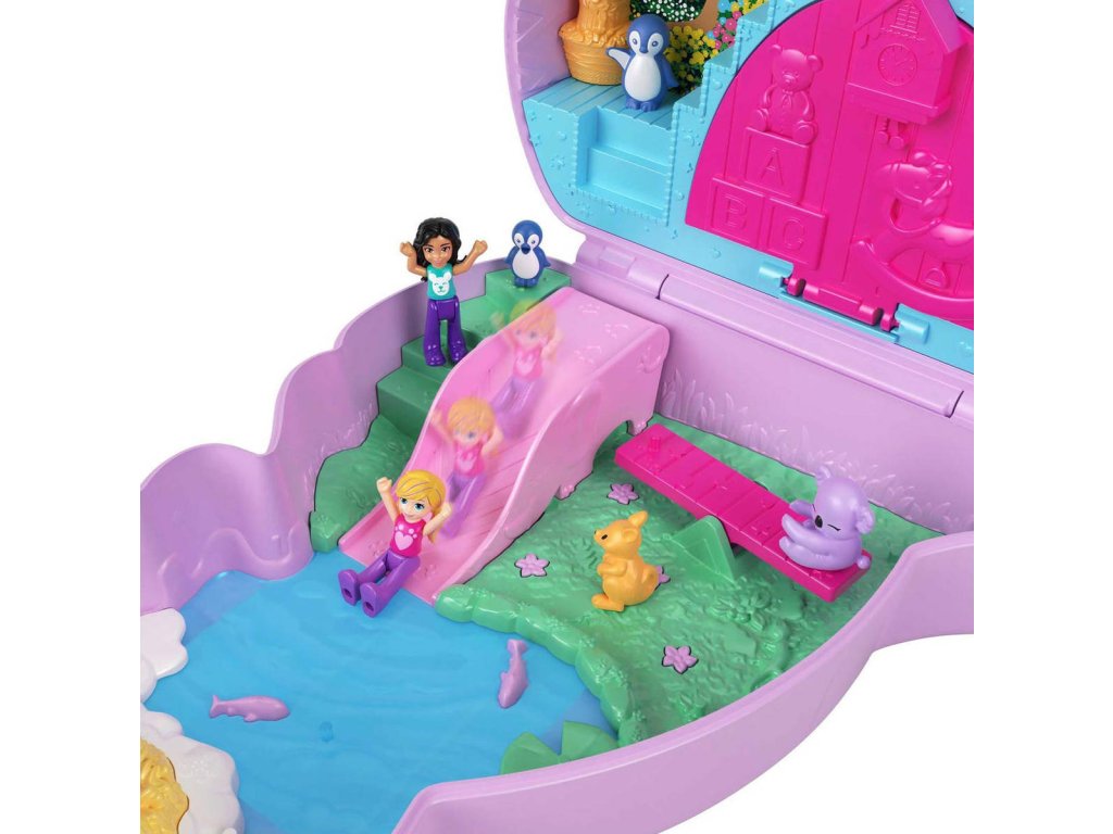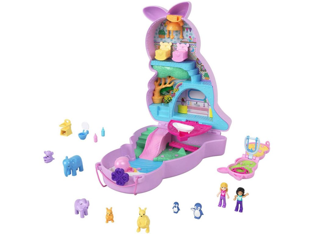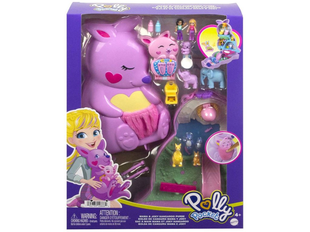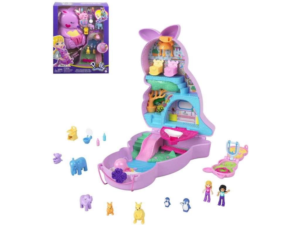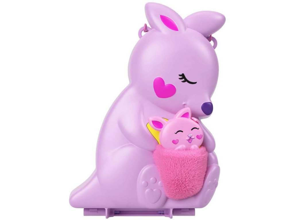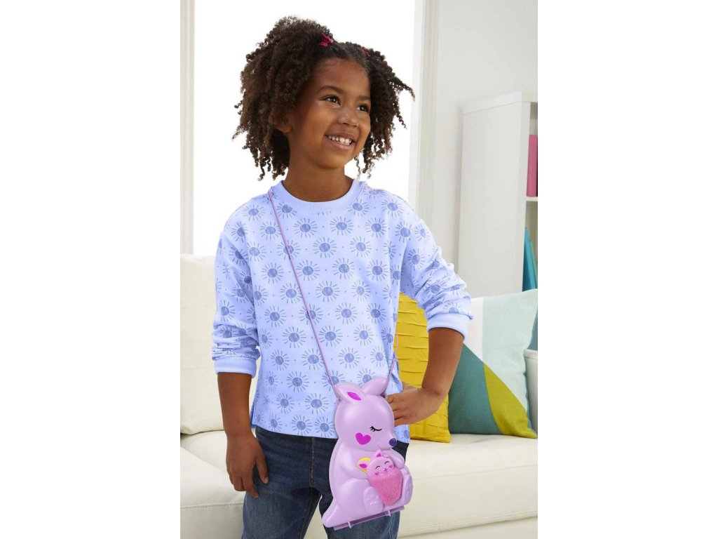 MATTEL Polly Pocket: Pidi Pocketková kabelka - Rodina klokanů. Rozkládací herní set, součástí 2 panenky s doplňky.Připravte se na spoustu zábavy s klokaní taškou Polly Pocket Mama and Joey! Větší přenosná hrací sada 2 v 1 je ideální pro hraní doma nebo na cestách. Rozkošná maminka klokanice má měkkou taštičku, do které se Joey vejde, když si s ním zrovna nehrajete. Po otevření hrací sady najdeš rozkošný zvířecí útulek s celkem 13 hracími dílky, včetně 2 mikro panenek, 7 zvířátek a 4 doplňků. Některé doplňky mají vyměnitelné funkce, takže je děti mohou připojit k různým částem hrací sady a získat tak nekonečné možnosti hraní! Každá kompaktní hrací sada má také nastavitelný popruh na přenášení, takže si děti mohou vzít sadu s sebou, ať už jdou kamkoli! Barvy a dekorace se mohou lišit. Skvělý dárek pro děti od 4 let.