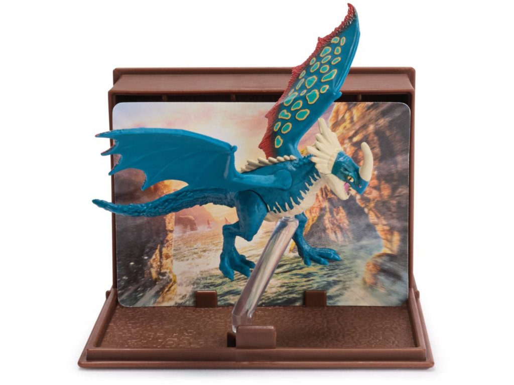 Herní set v licenci Jak vycvičit draka. Součástí balení ve tvaru knihy, 5cm figurka, stojánek, pozadí a sběratelská karta. Různé varianty - hračka s překvapením.Spin Master přichází s kolekcí figurkových sad inspirovaných filmem "Jak vycvičit draka". Každá sada obsahuje jednu figurku draka o velikosti přibližně 5cm, která je balena v tematickém obalu ve formě knihy draků. Kromě figurky obsahuje sada také sběratelskou kartu s podrobným popisem zvláštních vlastností draka. Mezi dostupné draky patří postavy jako Bezzubka, Smrtící Nadder nebo Gronckle. Každý z těchto draků je detailně zpracován a věrně odráží svůj filmový předobraz. Tím se stává vhodným doplňkem pro sběratele a fanoušky série. Sada neobsahuje pouze figurku a kartu, ale i stojánek na figurku a pozadí scény z filmu. Tím umožňuje vystavení celé sbírky na poličce či v dětském pokoji. S deseti různými figurkami k dispozici je možné vytvořit kompletní dračí klan. Figurka je určena dětem ve věku 5-7 let, ale díky svému detailnímu zpracování najde své místo i u starších fanoušků filmu. Produkt je vhodný jako dárek k narozeninám nebo jiným příležitostem. Inspiruje děti k nápadité hře a rozvíjí jejich představivost při vymýšlení vlastních dobrodružství ve světě draků.