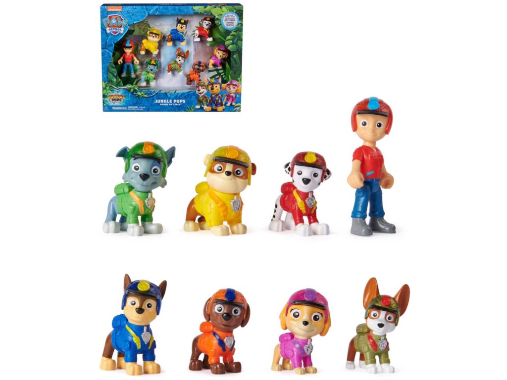 8 plastových figurek v licenci Tlapková Patrola (Paw Patrol) Lesní tlapky. Součástí 8 pejsků + postavička Ryder.Vytvořte si vlastní Tlapkovou patrolu: Dobrodružství Tlapek z džungle nyní s dárkovou sadou figurek Tlapková patrola Tlapky z džungle! Tato sada figurek Tlapková patrola obsahuje Rydera a další Tlapkózní pejsky: Chaseho, Marshalla, Rockyho, Rubbleho, Zumu, Trackera a Skye. Tyto akční figurky nikde jinde nenajdete! Tato vzrušující dárková sada akčních figurek je perfektní způsob, jak si přinést domů všechny své oblíbené postavy ze seriálu! Díky autentickému designu a stylu vypadá každé štěně stejně jako v seriálu; s realistickými detaily srsti, které oživí každé herní dobrodružství. Použijte svou představivost a ztvárněte své oblíbené momenty z Tlapkové patroly: Tlapky z džungle nebo vytvořte zcela nové mise!