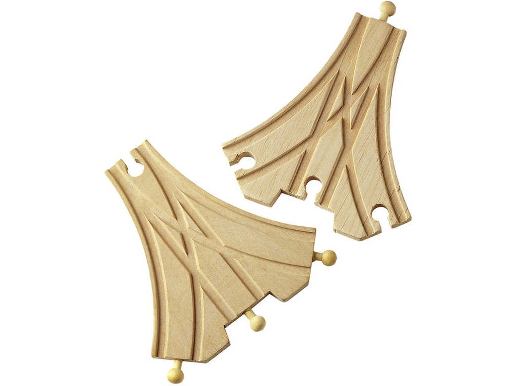 Sada dvou kusů výhybek k vláčkodráhám Woody. Části jsou vyrobeny ze dřeva nejvyšší kvality. Koleje jsou kompatibilní i s jinými dřevěnými vláčkodráhami. Balení obsahuje 2 oboustranně frézované dřevěné výhybky - 1ks se třemi kolíčky a 1ks s jedním kolíčkem.Dřevěné hračky jsou oblíbené nejen dětmi, ale i rodiči. Hračky ze dřeva patří mezi zdravotně nezávadné hračky.